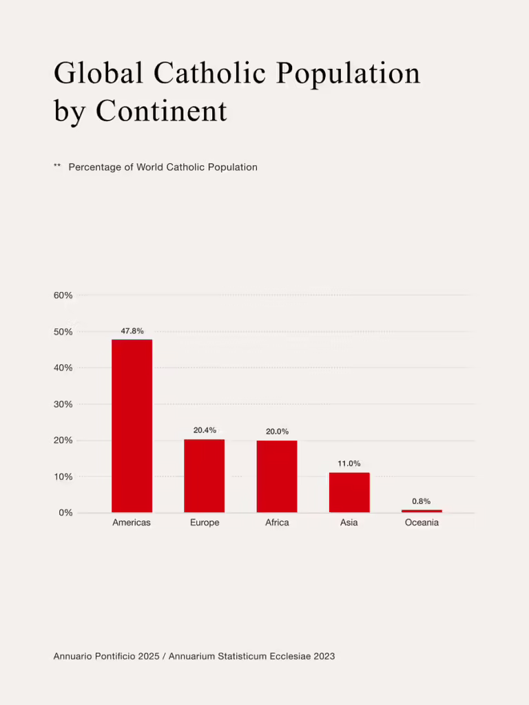 Pope Leo XIV will also be well aware of the latest figures from the Annuario Pontificio 2025. The global Catholic population rose by 1.15% between 2022 and 2023—from approximately 1.39 billion to 1.406 billion. The largest growth was recorded in Africa (+3.31%).