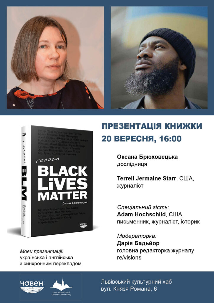 Das ukrainische Verlagshaus Čoven (Boot) kündigte am 13. September in den sozialen Netzwerken an, in Zusammenarbeit mit dem Lwiwer Zentrum für Stadtgeschichte am 20. September die Präsentation des Buches „Stimmen von BLM“ (Голоси BLM) zu veranstalten.