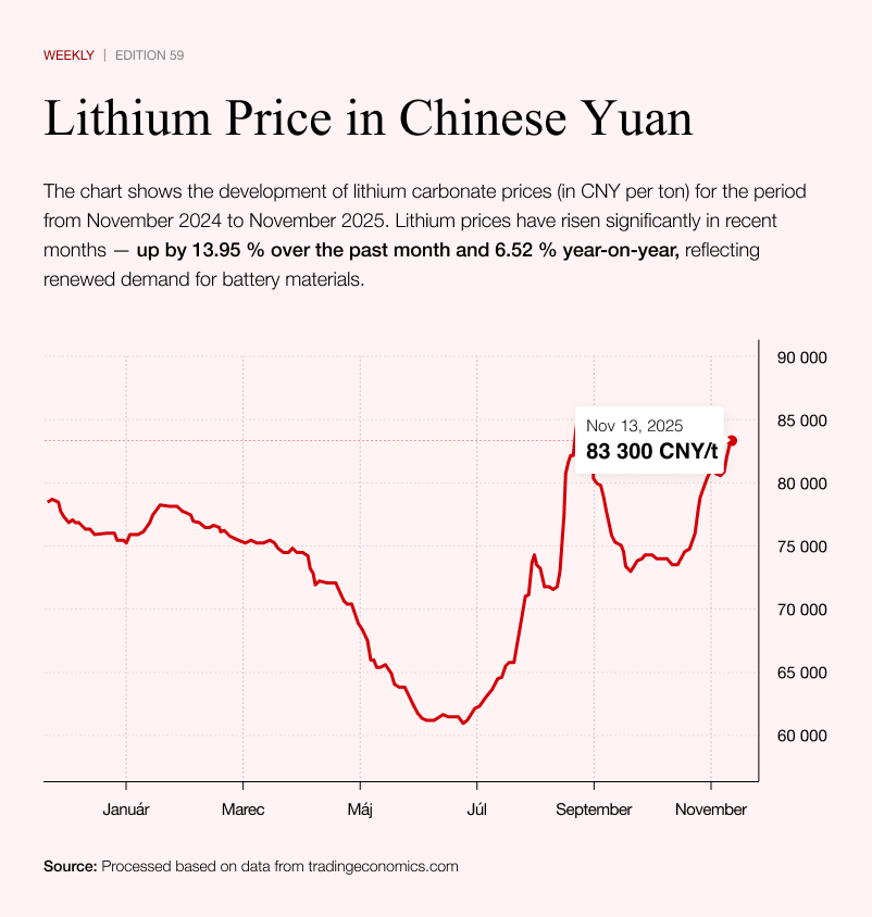 For the average investor, it is not the exact price that is decisive, but rather the direction of the trend. Current data show that the price of lithium has been rising again since the end of September. This trend partly mirrors Donald Trump's political interest in raw materials of strategic importance. Nevertheless, the price of lithium is still well below the levels seen in 2022 and 2023, when the market expected a permanent shortage, which ultimately did not materialize.
