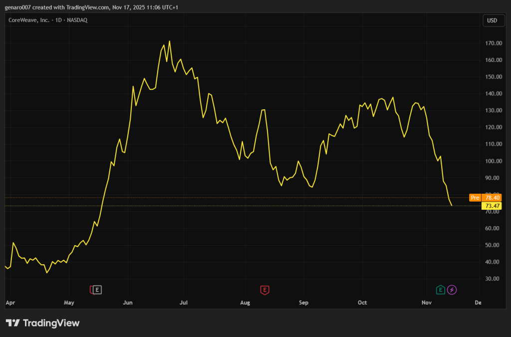 CoreWeave specializes in cloud services and high-performance computing - in other words, it's a company that is in tune with the zeitgeist. It has soared to 180 since launching at a price of $40. Now, with tech stocks under pressure, its value has fallen to 77.