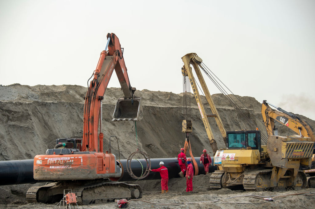 Workers at the construction site of the China-Russia eastern natural gas pipeline project in Qutang Town, Haian City, East China's Jiangsu Province, March 12, 2022. Photo: Costfoto/Future Publishing via Getty Images