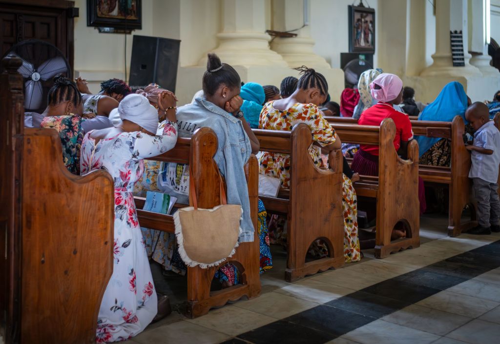 Women in colourful dresses pray during Sunday service at the Anglican Christ Church Cathedral in Stone Town, Zanzibar. Photo: Andy Soloman/UCG/Universal Images Group via Getty Images