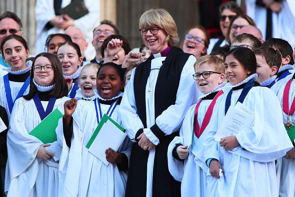 Sarah Mullally on the steps of St Paul’s Cathedral after her confirmation as the first female Archbishop of Canterbury, 28 January 2026, London. Photo: Alishia Abodunde/Getty Images