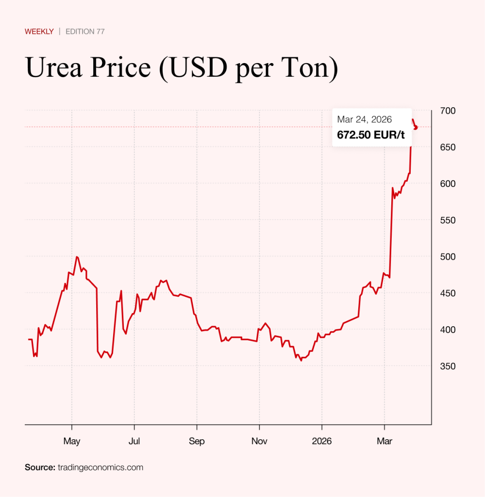 Gulf countries account for roughly a fifth of global supply of commodities such as ammonia, phosphate and sulphur. In the case of urea, their share approaches 50 per cent. Since the outbreak of the Iran conflict, its price has risen by nearly half.