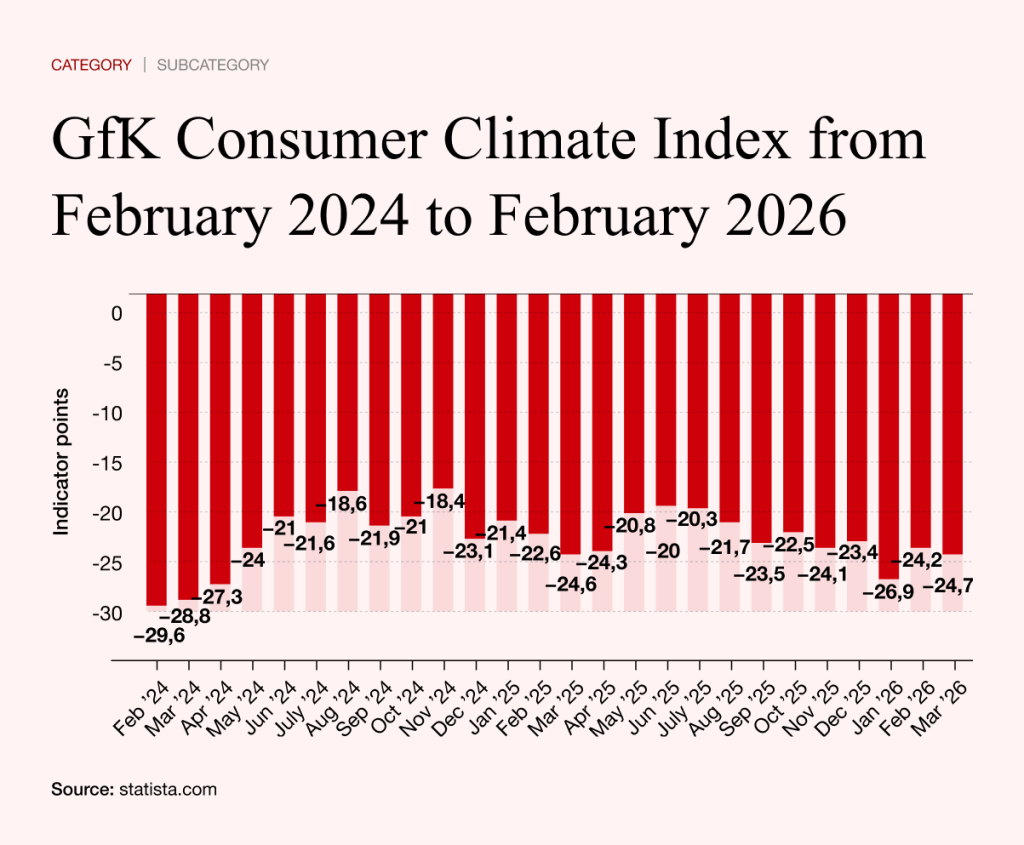GfK Consumer Climate Index from February 2024 to February 2026. Grafic: Statement.com